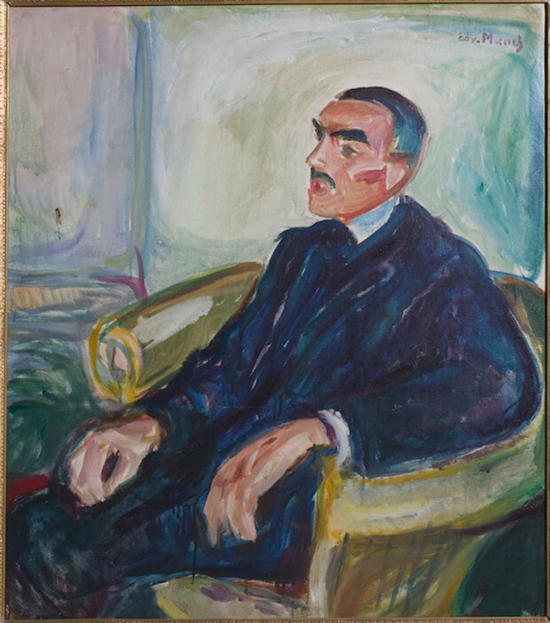 Edvard Munch. 1925, Jappe Nilssen in una sedia di vimini, 1925–1926, olio su tela, cm. 78 x 69