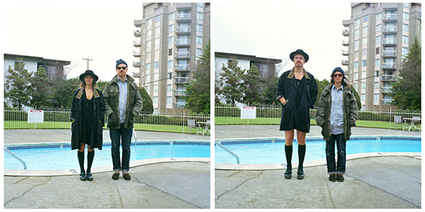 Le fotografie rappresentano delle coppie dapprima con indosso i propri vestiti per poi ri-fotografarli con i vestiti altrui.