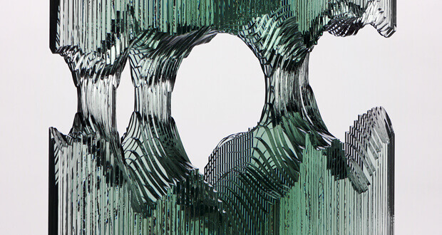 Scultura realizzata con lastre di vetro sagomate e accoppiate