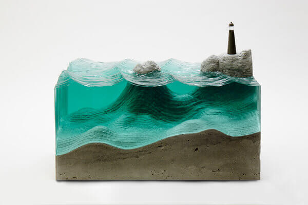 Scultura realizzata con lastre di vetro sagomate e accoppiate