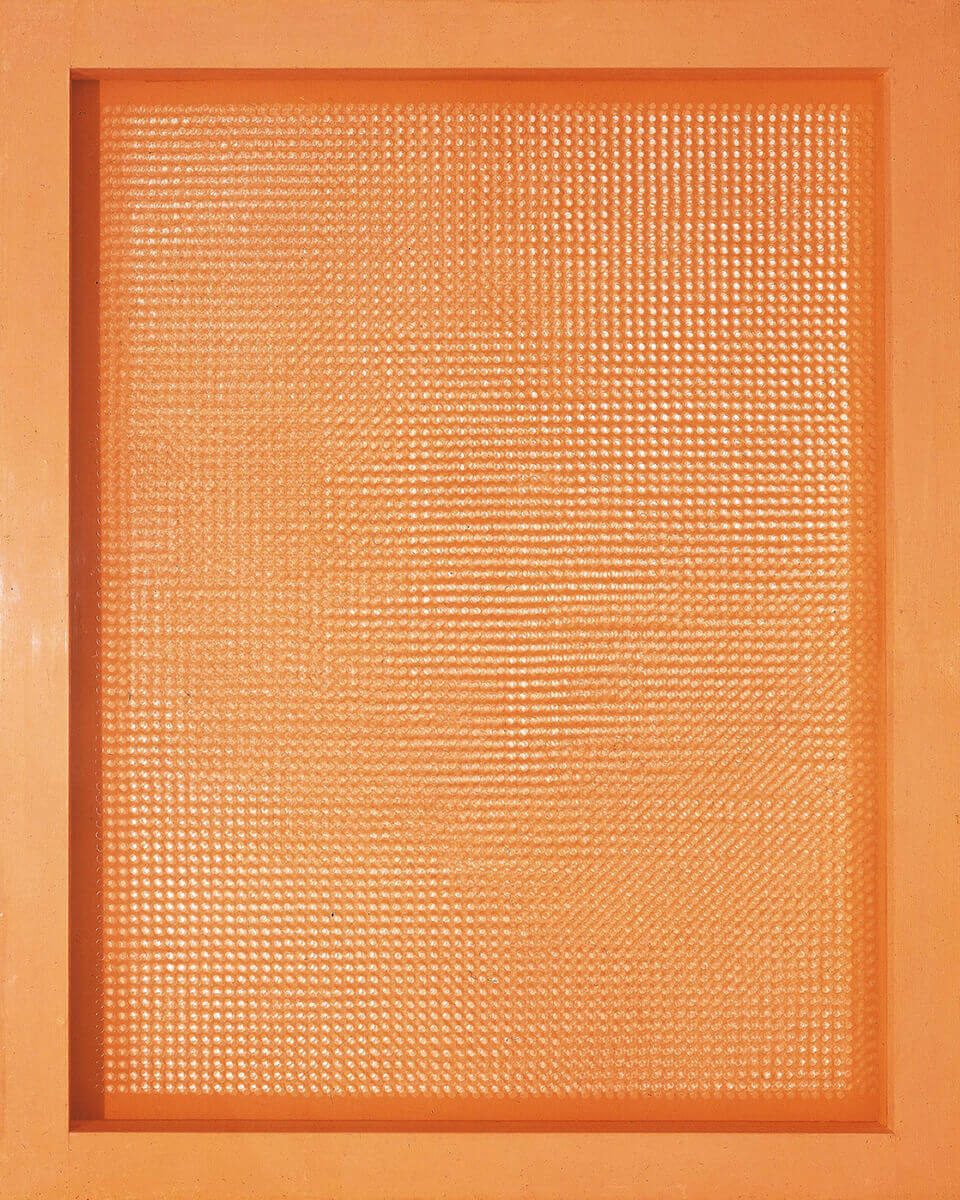 Dadamaino-Volume-a-moduli-sfasati-1960-fogli-di-plastica-fustellati-e-applicati-su-telai-sovrapposti-100×80-cm