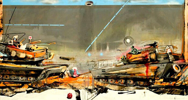 Minaccia imminente, 2012, olio, smalto e tecnica mista su tela, cm. 274×183