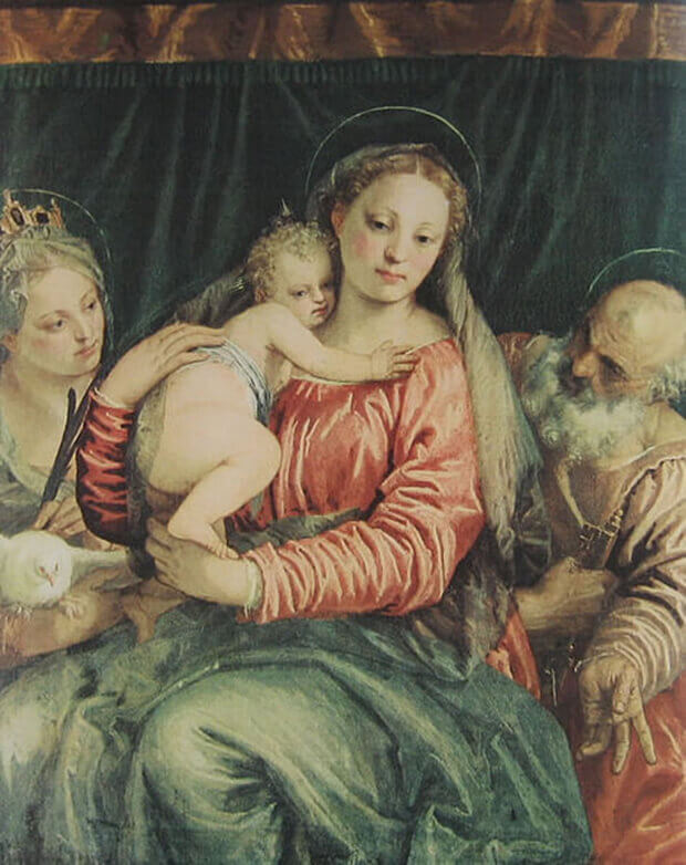 Madonna col Bambino, una Santa martire e San Pietro, 555-60, cm. 119×95