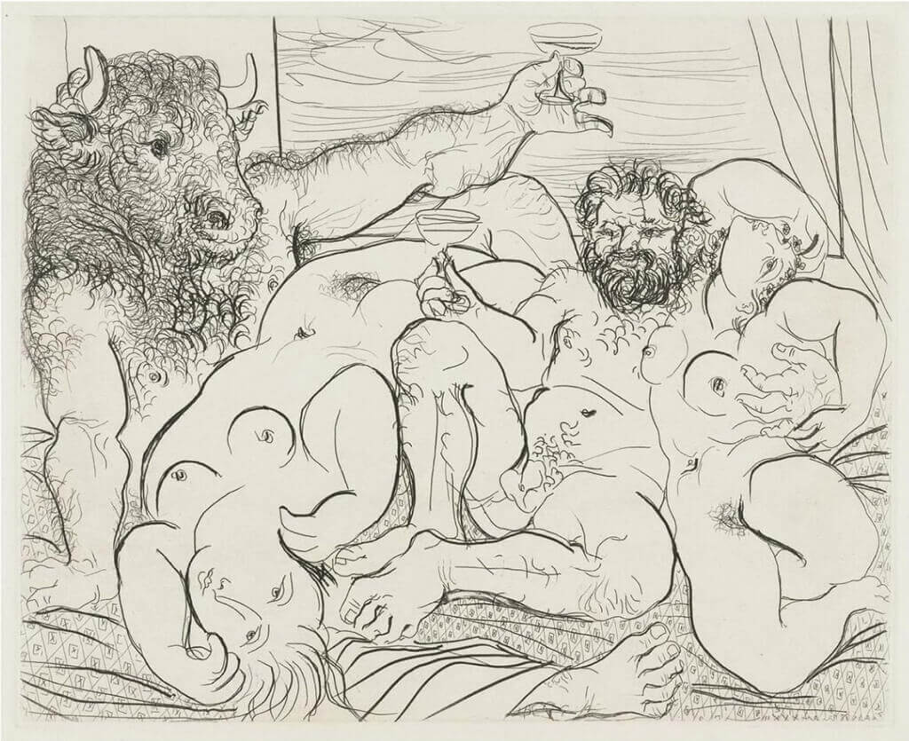 Marie Thérese como vestal contempla al Minotauro dormido, 1933