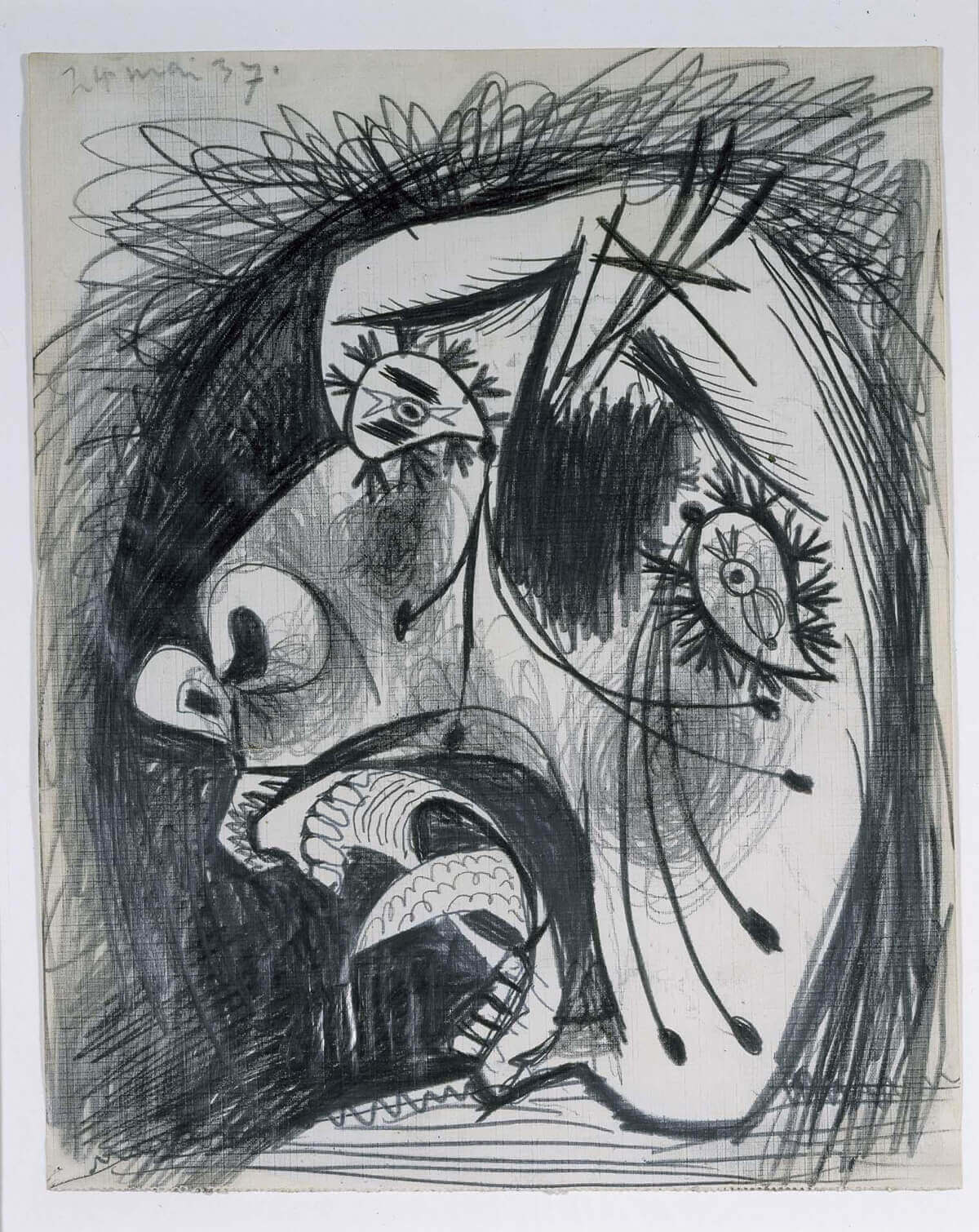 Pablo Picasso Studio per testa-piangente, Schizzo per Guernica, 1937, matita, gouache su carta telata, cm. 29,2 x 23,2. Collezione del Museo Nacional Centro de Arte Reina Sofía, Madrid