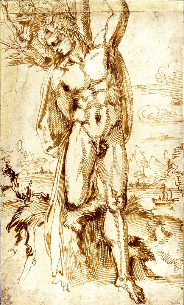 Nudo maschile legato ad un albero, possibilmente San Sebastiano, c. 1532