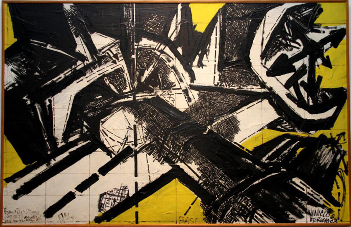 Vinicio Berti. Racconto-Utopia, 1963, olio su faesite. Collezioni civiche. Raccolta GAM